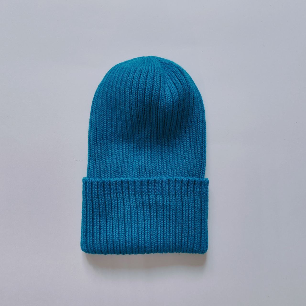 Детская шапка ТАКОРИ из мериноса ярко бирюзового цвета.
